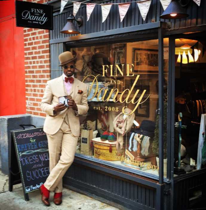 Menswear is classic, refined and relevant at Fine and Dandy. (Photo credit: @FineandDandyShop, modeled by Dandy Wellington.)
