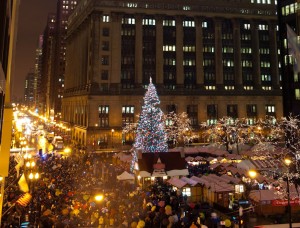Destinations Bright Lights, Big City: Chicago The Windy City’s hulking skyline glistens any given evening. But things are at their bright and shiny best from Thanksgiving to Christmas, when downtown’s two major shopping strips go all out to rustle up spirit.
