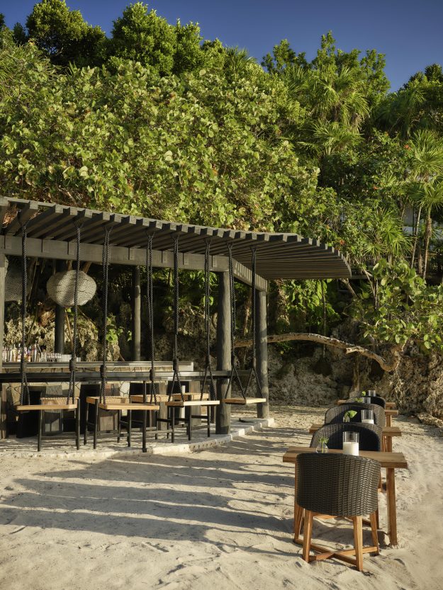 The bar and grill is a mash-up of culinary influences that includes island spices and coastal Mexican flavors. The daytime vibe welcomes diners in swimsuits, and while guests may dress more formally during the evening, bare feet are still encouraged as the team turns up the music (with a live Mariachi band on Saturdays) in the hopes that you’ll join them on the beach for a dance.