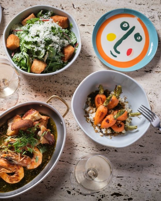 Back at the hotel, nightly Social Hour (with complimentary beverages for guests) meets Golden Hour dips in the shimmering courtyard pool. When hunger calls, one of LA’s most buzzed-about restaurants, LadyHawk by Top Chef Middle East winner Charbel Hayek, beckons locals and visitors alike with Eastern-Mediterranean-meets-SoCal small plates. Book your reservation in advance — it fills up.