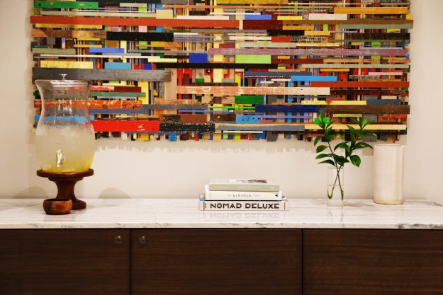 Like the rest of Nashville—a hodgepodge of old and new—the Aertson Hotel is a fusion of eras. The LEED-designed hotel commissioned New Yorker Cynthia Reeves to curate the hotel’s art collection, paying homage to railroad tycoon Cornelius Vanderbilt, for whom its neighbor Vanderbilt University was named. Cynthia leveraged architectural designer Gensler’s goal “to augment the feel of this industrial building by installing artworks that incorporate innovative materials used in unexpected ways” through commissioning original works from a roster of talented artists, each of whose distinct vibe jived with Nashville’s eclectic design scene.