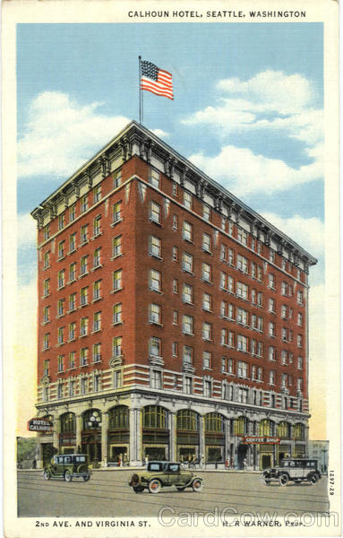 Originally built as the Calhoun Hotel in 1910, when Seattle was still in the midst of a boom ignited by Alaska’s Klondike Gold Rush, the eight-story Beaux Arts building is a designated city landmark. It’s located near the waterfront, just steps from Pike Place Market, where fishmongers handle tossed fish with the dexterity of Gold Glove first basemen, and from the nondescript storefront where Starbucks served its first cup of Joe in 1971.