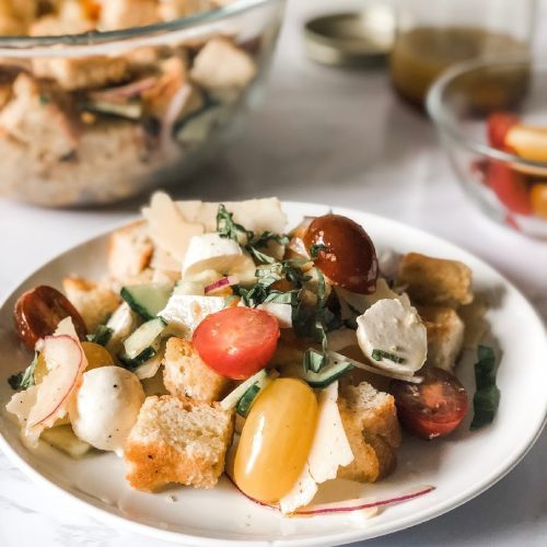 Summer Salad Recipe #1: Fresh Mozzarella, Heirloom Tomato, Basil, and Bread Salad